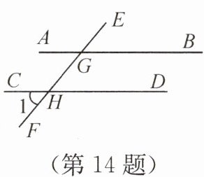 14. 如图,$AB// CD$,$EF分别交AB$,$CD于G$,$H$,若$\angle 1= 50^{\circ}$,则$\angle EGB= $______.