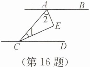 16. 如图,$AB// CD$,$CE$,$AE分别平分\angle ACD$,$\angle CAB$,则$\angle 1+\angle 2= $______.