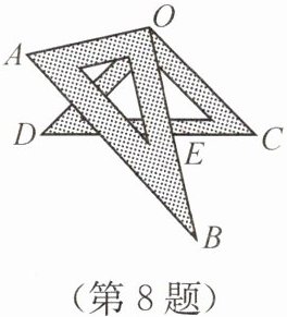 8. 如图,将一副三角尺叠放在一起,使直角的顶点重合于点$O$,$AB// OC$,$DC与OB交于点E$,则$\angle DEO$的度数为()