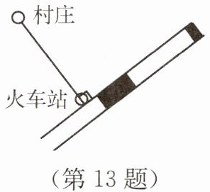 13. 如图,在铁路旁边有一村庄,现要建一火车站,为了使该村人乘火车方便(即距离最短),请你在铁路旁选一点来建火车站(位置已选好),说明理由:______.