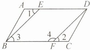 20. 如图,已知$AD// BC$,$\angle 1= \angle 2$,要说明$\angle 3+\angle 4= 180^{\circ}$,请补充完整解题过程,并在括号内填上相应的依据.