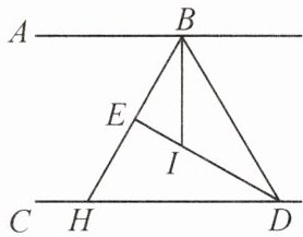 (2)$H是BE的延长线与直线CD$的交点,$BI平分\angle HBD$,写出$\angle EBI与\angle BHD$的数量关系,并说明理由.