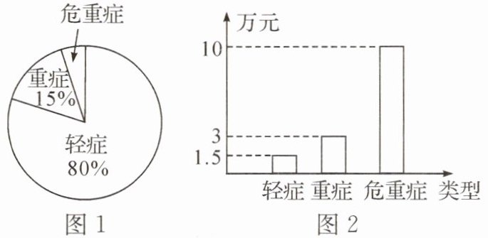 18. 图1是一地某种疾病轻症、重症、危重症三类患者的人数分布统计图(不完整),图2是这三类患者的人均治疗费用统计图.请回答下列问题.