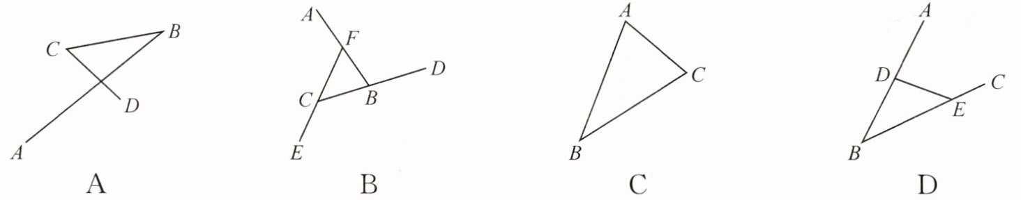 1. 下列由三条线段组成的图形是三角形的是()