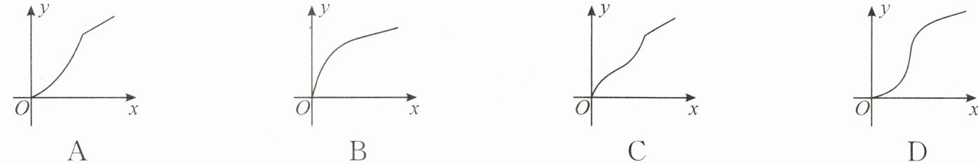 5. 如图是长方体水槽轴截面示意图,其底部放有一个实心铜球(铜的密度大于水),现向水槽中匀速注水,下列四个图中能大致反映水槽中水的深度($ y $)与注水时间($ x $)关系的是()
