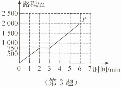 3. 社会在发展,时代在进步。快递上门送件,取件已成为人们购物的一种重要方式。如图是快递员小王某日为某位顾客派送快递行驶路程(m)与时间(min)的图像,观察图像得到下列信息,其中正确的是()