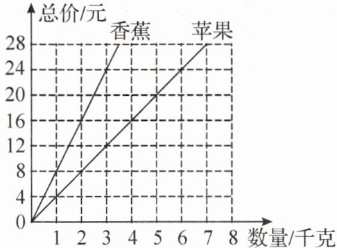 13. 如图分别表示香蕉、苹果的总价与数量之间的关系,看图回答问题。