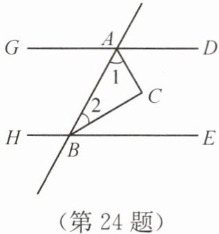 24. 如图,AC,BC分别平分$∠DAB,∠ABE$,且$∠1与∠2$互余,则____$// $____,理由是____.