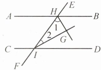 8. 如图,直线$AB// CD$,HG 和 IG 分别是$∠BHI和∠DIH$的角平分线,则 HG 是否垂直于 IG?为什么?