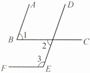 7. 如图,已知$AB// DE,∠1+∠3= 180^{\circ }$,则 BC 与 EF 平行吗?