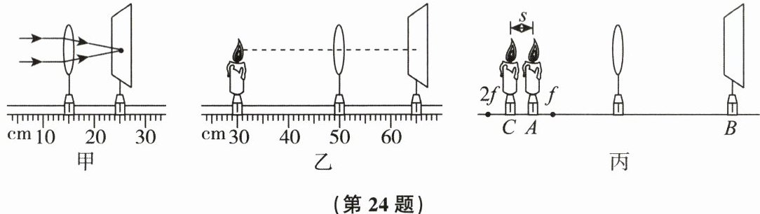 24. 学完凸透镜成像规律后,小明对凸透镜成像特点作了进一步探究。