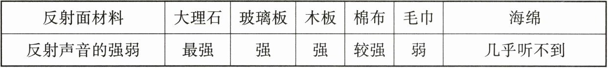 ,让同一位同学倾听反射声音的强弱,实验结果如表所示。(2)分析实验结果可以得出:其他条件相同时,反射声音的强弱与充当反射面的材料