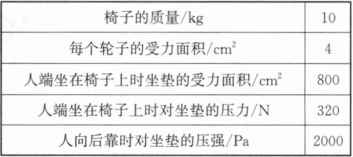 (3)计算当人端坐在电脑椅上时人对坐垫的压强,说明人“后靠”时比“端坐”时舒服的原因。