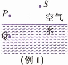 例1 (2024春·杭州市余杭区期末)作图:如图所示,某同学的眼睛在S处,能同时看到P处的小鸟和Q处的鱼,请在图中按题意画出光路图来解释上述现象。