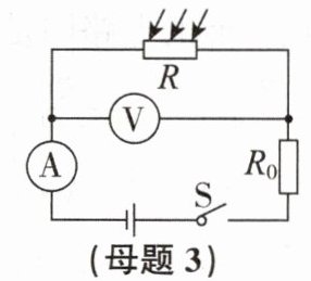 母题3 (2024秋·台州市椒江区期末)如图所示的电路中,电源电压不变,R₀为定值电阻,R为光敏电阻(阻值随光照强度的增大而减小),闭合开关,逐渐增大光照强度时。下列说法中,正确的是 (