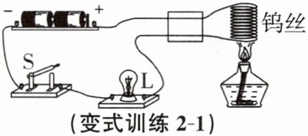 变式训练2-1 (2024秋·台州市黄岩区期末)如图所示的钨丝是将一个白炽灯去除玻璃罩制成的。闭合开关S,小灯泡L发光,钨丝不发光;向钨丝吹冷气时,小灯泡L变亮;用酒精灯给钨丝加热,小灯泡L逐渐变暗直至熄灭。由实验可知 (