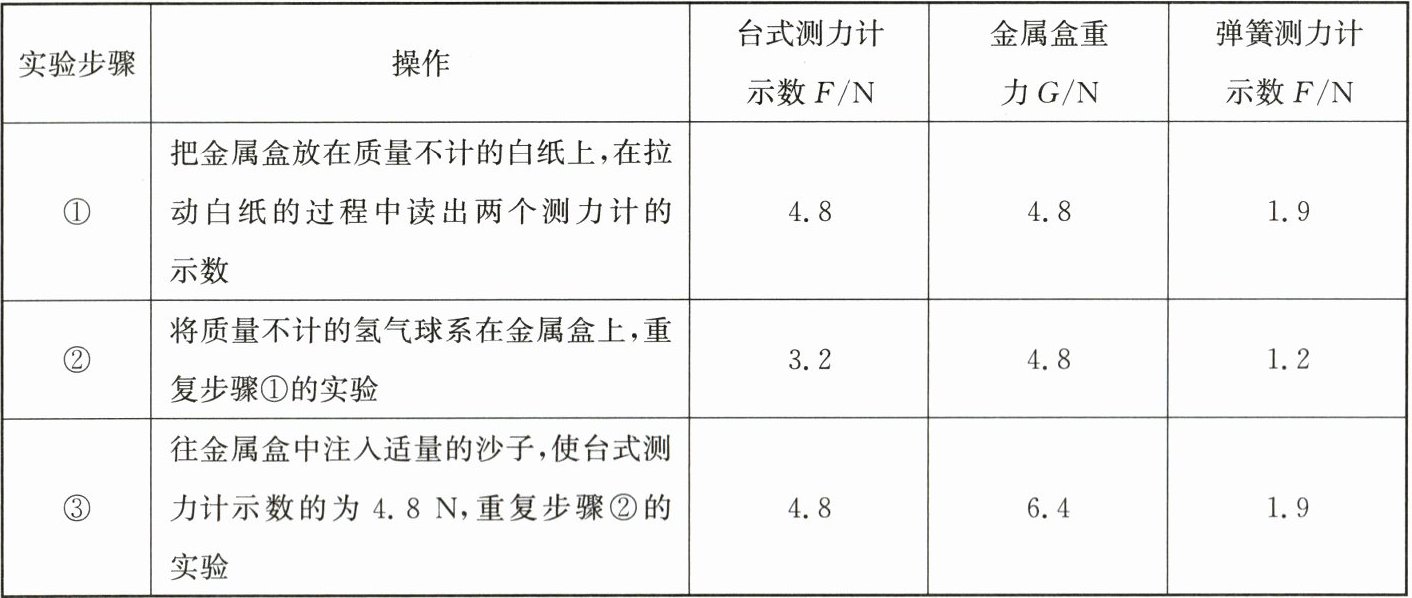 原理测出摩擦力大小的。(2)实验步骤②使用氢气球是为了改变