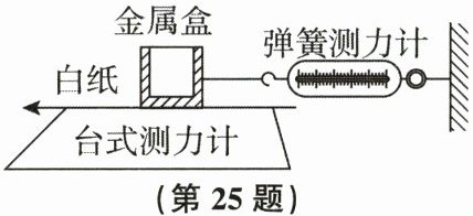 25. 摩擦力大小是与压力有关,还是与重力有关? 某小组的同学利用如图所示的装置进行了探究。实验步骤和数据记录如表所示: