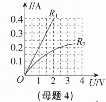 电阻$R_1$与$R_2$的I-U图像如图所示。当$R_2$两端的电压为1.5V时$,R_2$的阻值是