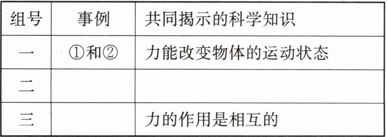 第三行:③和⑥ 力能改变物体的形状 第四行:④和⑤