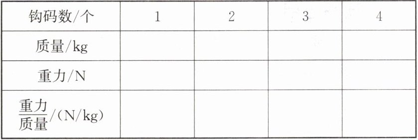 (3)用弹簧测力计依次测出1~4个钩码受到的重力,把测量结果记录在表中。