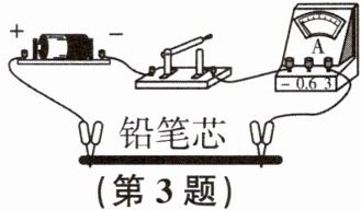 3. (2024秋·金华市期末)如图所示,电源电压保持不变,闭合开关通电一段时间后,发现粗细均匀的铅笔芯温度逐渐升高,电流表示数逐渐增大。本实验影响该铅笔芯电阻大小的主要因素是 (