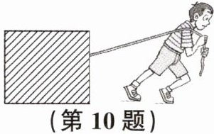 10. 如图所示,用100N的拉力拉着重为300N的匀质实心方木块匀速前行,请用力的图示法画出木块受到的拉力。