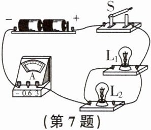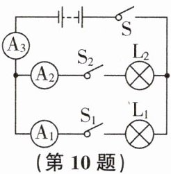 10. 在“探究并联电路中电流的关系”时,小科所设计的电路图如图所示,其中灯$L_{1}的电阻大于灯L_{2}$的电阻,下列说法中,正确的是 (
