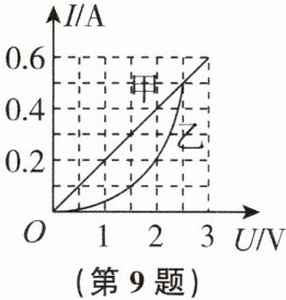 9. 如图所示为电阻甲和乙的I-U图像,下列说法中,正确的是 (