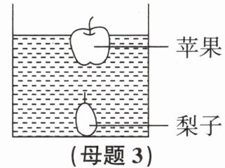 母题3 (2024秋·金华市东阳市期末)小东在家清洗水果时发现,放在盆中的苹果会浮在水面,而梨沉在盆底,如图所示。下列分析中,一定正确的是(