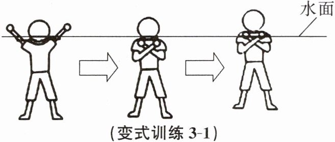 变式训练3-1 (2024秋·温州市期末)游泳时,将露出水面的双手浸入水中可以获得更大的浮力,使人上浮防止溺水,如图所示。手浸入水中的过程,人受到的浮力增大的原因是(