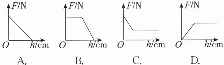 6. (2023秋·台州市温岭市期末)如图所示,在空烧杯中放置一块泡沫(与底部不密合),沿容器壁缓缓向烧杯中加水至A点。则在加水的过程中,烧杯底部对泡沫的支持力F与液面高度h的关系图像是(