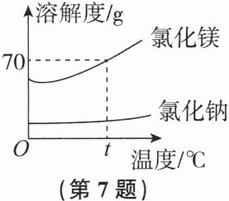 7. (2024秋·杭州市滨江区期末)豆腐营养丰富,内含优质蛋白质和微量元素。汉朝时古人就通过黄豆磨浆、分离渣浆、煮沸豆浆、点卤凝固这四个步骤制作豆腐。传统的豆腐制作常用卤水来点浆,常见卤水中含有(氯化镁和氯化钠),二者的溶解度曲线如图所示。下列说法中,正确的是(