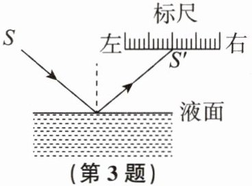 3. 如图所示为一种液面升降监测装置原理图。点光源S发出的一束激光与平静液面成$40^{\circ }$角,下列说法中,正确的是 (