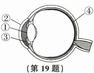 19. 眼睛对于我们认识世界至关重要,人通过眼睛获取了总量80%以上的信息。如图所示为眼球结构的示意图。
