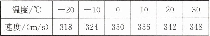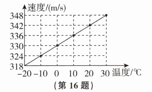 16. 声音传播的速度和温度有关,如表所示为空气中声速随温度变化的数据,根据表中数据绘制的图像如图所示。