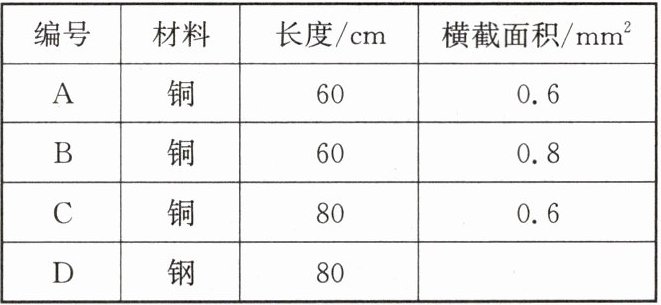 的两根琴弦进行实验。(2)为了验证猜想三,D材料的横截面积应为