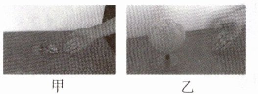 。(2)通过粘在底座中心的橡皮塞中的小孔,将气球打足气。再将有机玻璃底座放在桌面上(如图乙所示),当气球内的气体从小孔中泄出时,轻击一下有机玻璃底座,发现有机玻璃底座移动