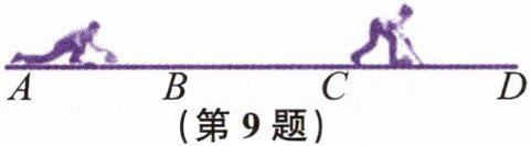 9. 如图所示为冰壶比赛过程,在AB过程中,投手用水平方向的力推冰壶,使冰壶在粗糙程度相同的冰面上做匀速直线运动,人对冰壶的推力
