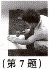 7. 如图所示,工人使用橡胶锤铺设瓷砖,橡胶锤敲击到瓷砖后会向相反方向运动,说明力的作用是