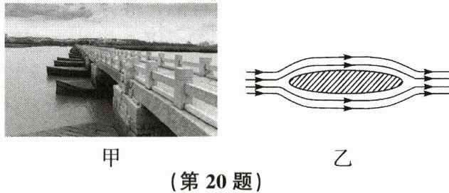 (2)如图乙所示为某古桥船型桥墩的示意图,水流在桥墩前一分为二,沿柱面两侧向后流动。请写出该古桥桥墩被设计成船型的优点: