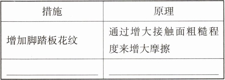 (1)为了骑行顺畅,自行车有些部位需增大摩擦,有些则需减小摩擦,请完成下列表格。