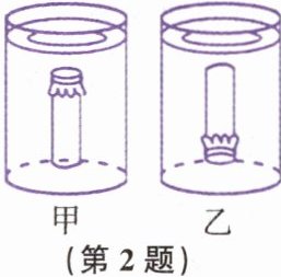 2. 将一个空塑料瓶瓶口扎上橡皮膜,竖直浸入水中,一次瓶口朝上(如图甲所示),一次瓶口朝下(如图乙所示),这两次塑料瓶在水里的位置相同。