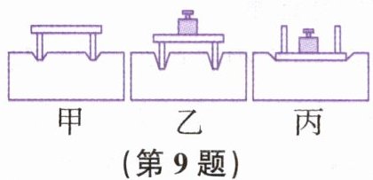 9. 在“探究影响压力作用效果的因素”的实验中,某小组同学利用小桌、砝码、海绵等物品在水平桌面上进行探究。