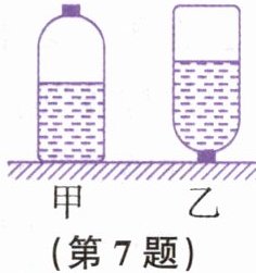 7. 如图所示,一个装有水的平底密闭塑料瓶,先正立放置在水平桌面上,再倒立放置。两次放置时,瓶对桌面的压力分别为$F_{甲}和F_{乙}$,瓶对桌面的压强分别为$p_{甲}和p_{乙}$,则 (