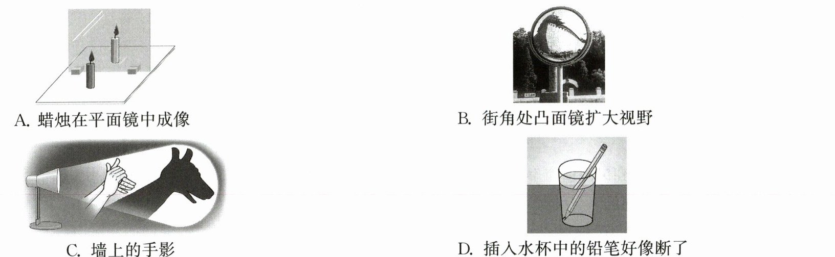)A. 蜡烛在平面镜中成像