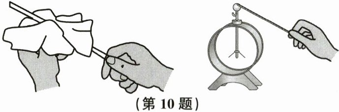 10. 如图所示,将丝绸与玻璃棒相互摩擦后,用该玻璃棒接触一个不带电的验电器,验电器箔片张开。关于箔片的张开,下列说法中正确的是(