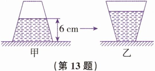 13. 如图甲所示,密闭容器静止在水平桌面上。若将其倒放在桌面上,如图乙所示,则水对容器底的压强
