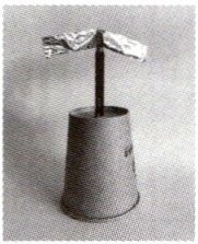 (3)将1支铅笔从1个倒置的纸杯的底部穿出,并将铝箔的中心放在笔尖上,如图所示。