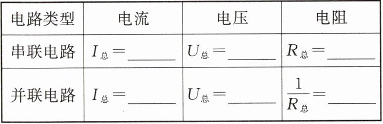4. 第二行:$ I_{1} = I_{2} = \cdots = I_{n} $ $ U_{1} + U_{2} + \cdots + U_{n} $ $ R_{1} + R_{2} + \cdots + R_{n} $ 第三行:$ I_{1} + I_{2} + \cdots + I_{n} $ $ U_{1} = U_{2} = \cdots = U_{n} $ $ \frac{1}{R_{1}} + \frac{1}{R_{2}} + \cdots + \frac{1}{R_{n}} $